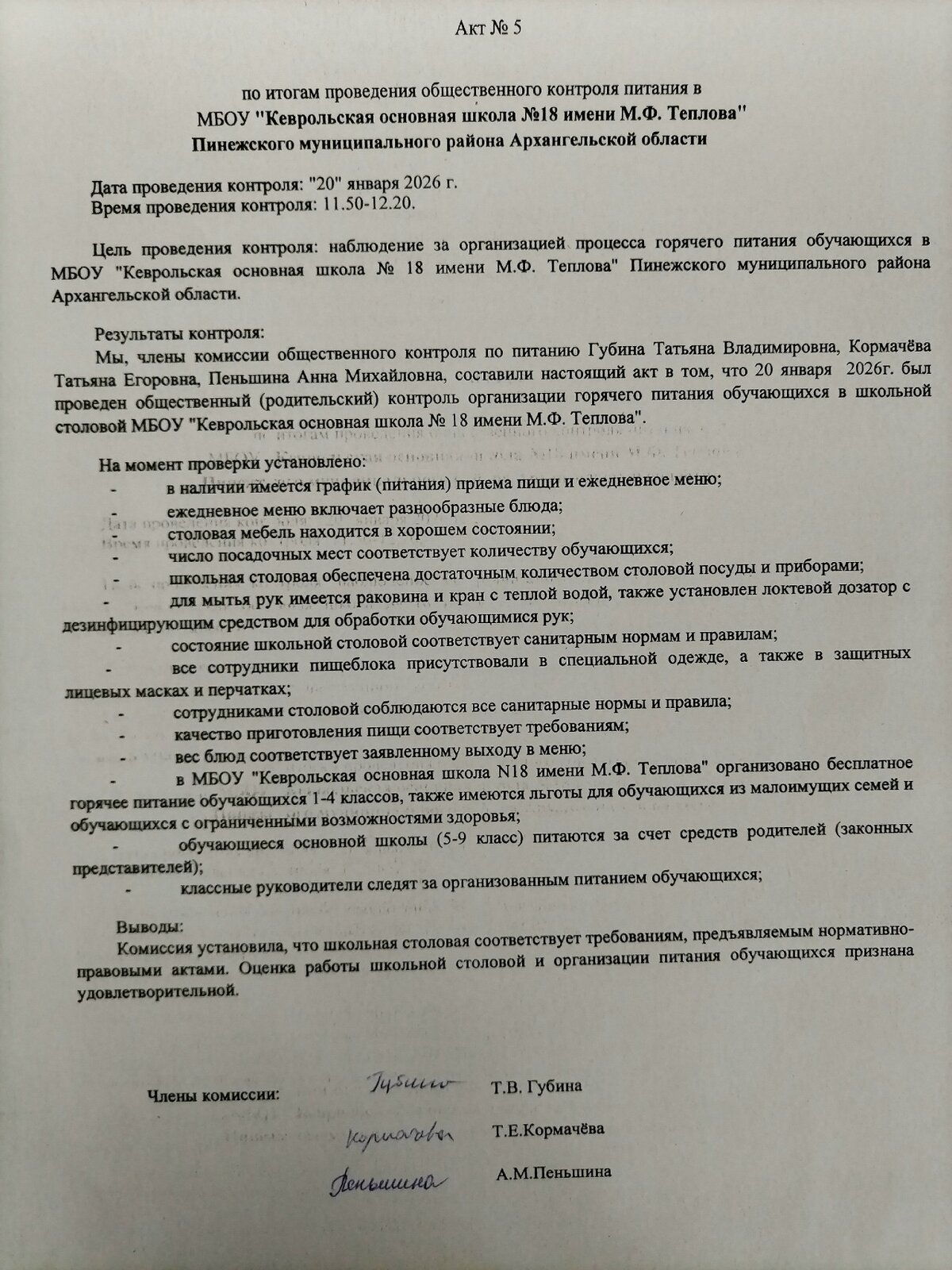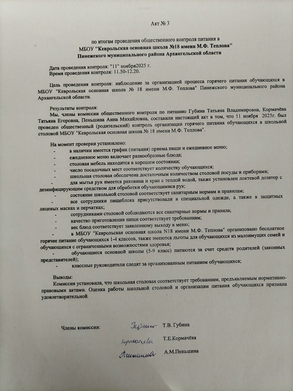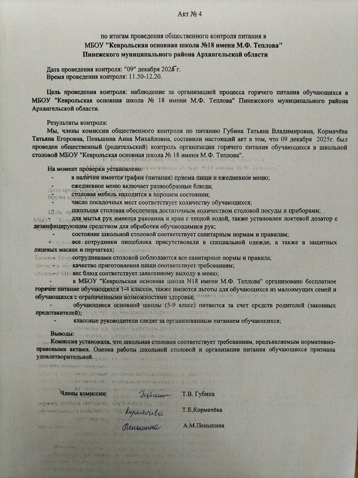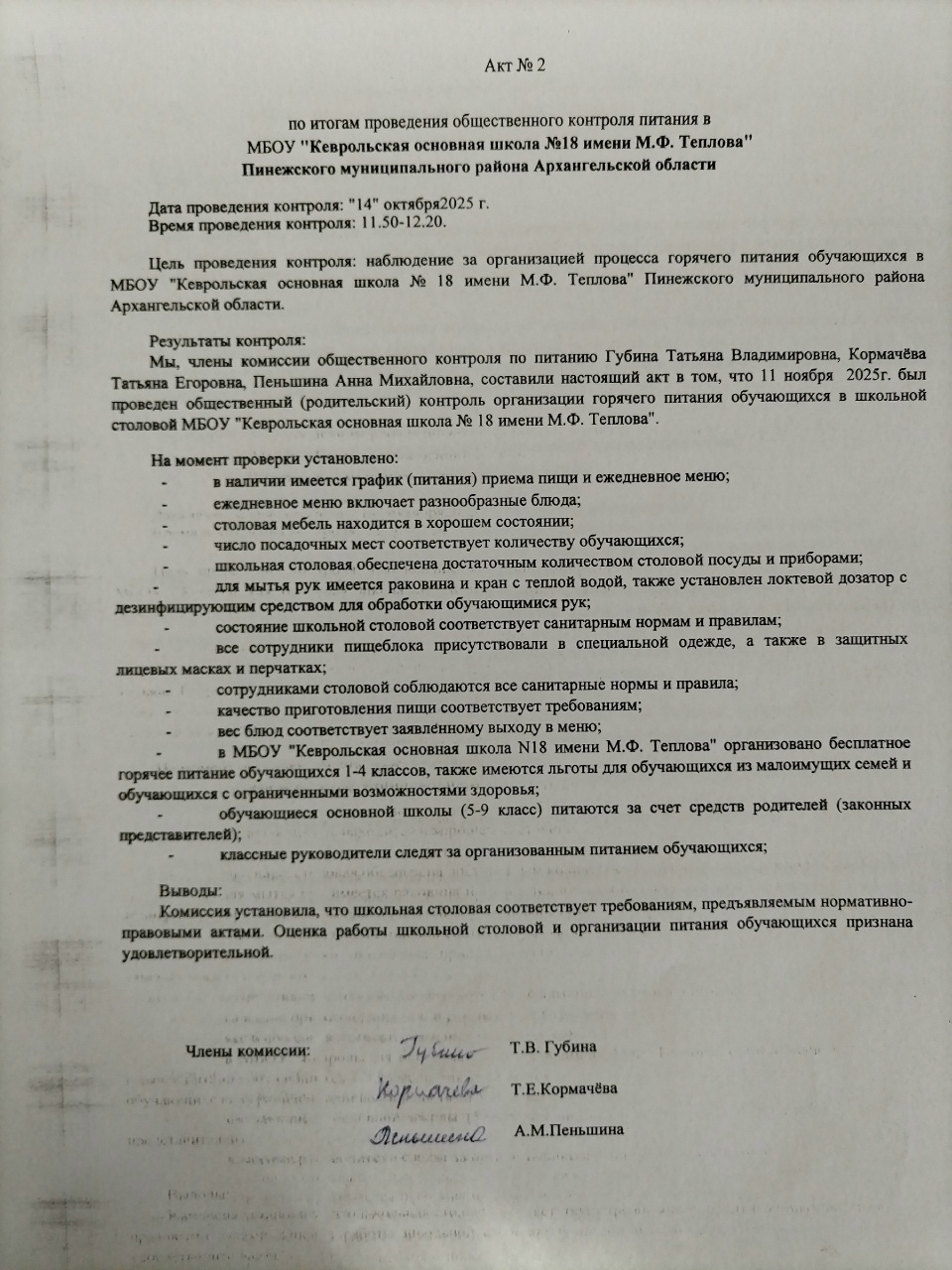 Акты родительского контроля 2025-2026гг.