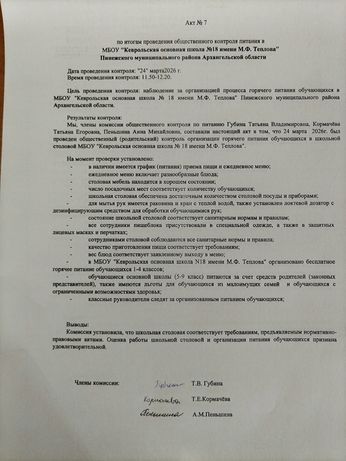 В данном разделе Вы можете ознакомиться с информацией по организации питания в МБОУ “Кеврольская ОШ № 18 им. М.Ф.Теплова”