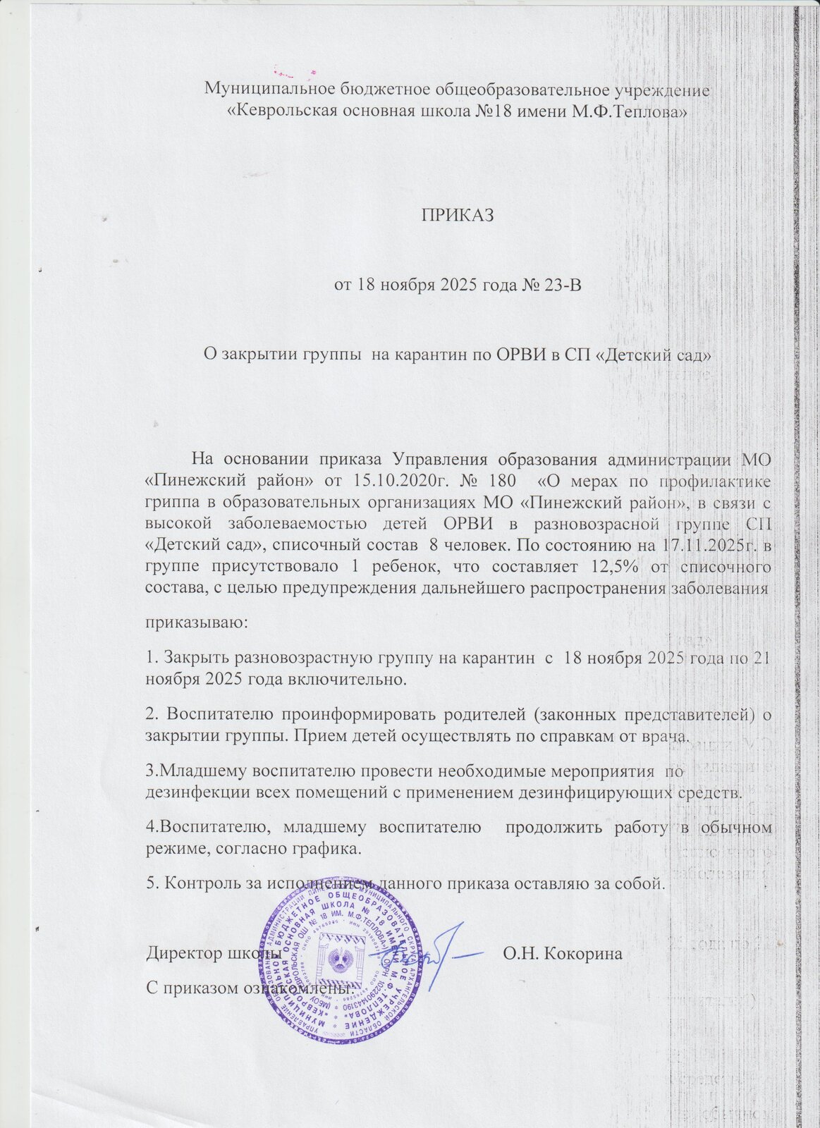 Ф.И.О. руководителя: Кокорина Ольга Николаевна директор школы (действует на основании Устава).